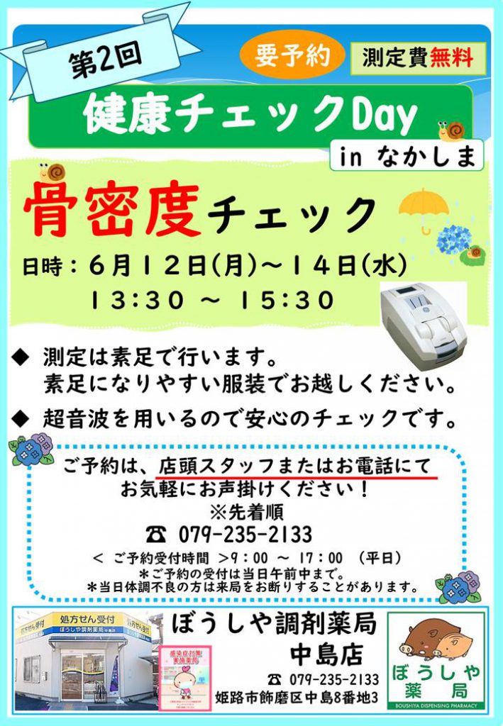 7/5(水)にぼうしや調剤薬局中島店にて骨密度測 ...もっと見る