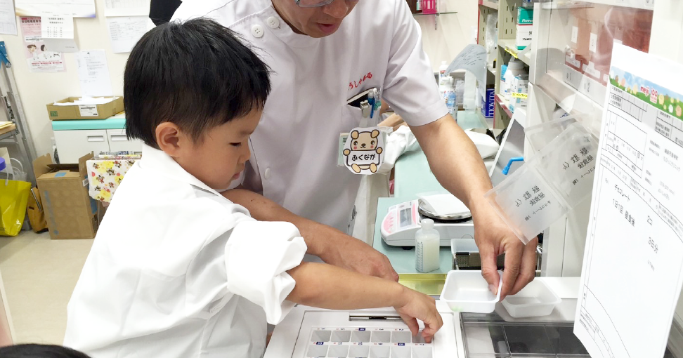 お子様が主役になれるブース!白衣を着て薬剤師になりきって、分包体験や粉薬調剤体験などができるコーナーです。写真撮影コーナーもありますので、ご家族そろって遊びに来てください。