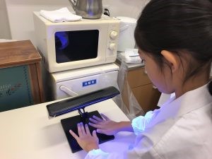 実際に体験した内容はブラックライトを用いた手洗いチェック、