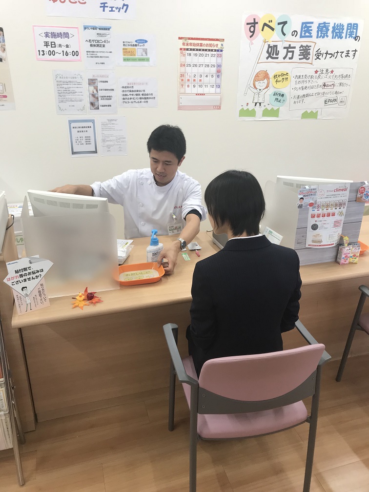 在宅終了後は、田寺東店で常設している検体測定器のプレを行い、血糖測定の意義などについて理解を深めていただきました
