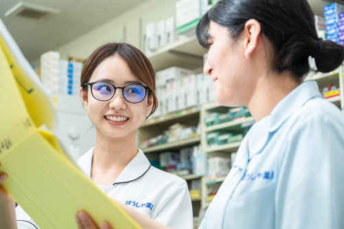 ぼうしや薬局の従業員数の7割が女性職員です。育児世代の女性が働きやすい環境づくりを心がけております。