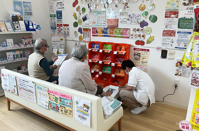大人気の骨密度測定をはじめ、体組成測定、血管年齢、HbA1c測定など患者様の要望などを聞きながら、2か月に1度店舗で実施しています。どれも満足度の高いイベントで地域に信頼される薬局を目指しています。