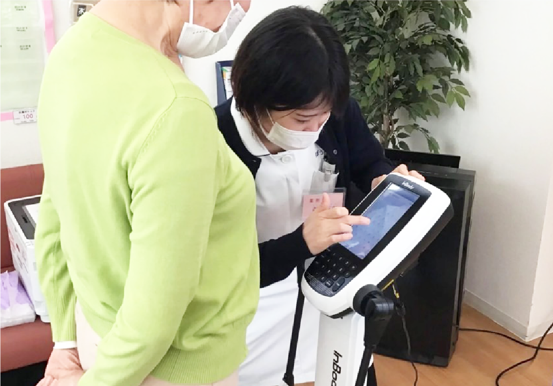 ぼうしや薬局宮西店の2階には、InBodyやベジチェック、ストレスチェック付き血管年齢測定、 心電計付き血圧計など、充実した測定コーナーをご用意しています。
